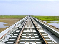 • 6月30日,笔者从格库铁路台特玛湖特大桥铺轨现场了解到,格库铁路台特玛湖特大桥是新疆跨度最长的铁路桥,全场约24.5千米,目前已完成架设铺轨539孔,剩余212孔,预计8月15日全桥贯通。 笔者在铺轨现场看到,大型铺轨机械在有条不紊地工作着,T梁被倒装龙门架运送到桥墩上,并把轨排铺设在T梁上,工人们正按照操作规范架梁铺轨。 据了解,格库铁路东起青…[详细]
