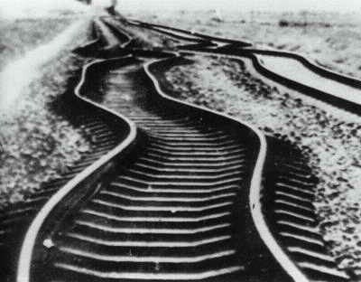 图一:唐山大地震“扭波”造成铁轨变形