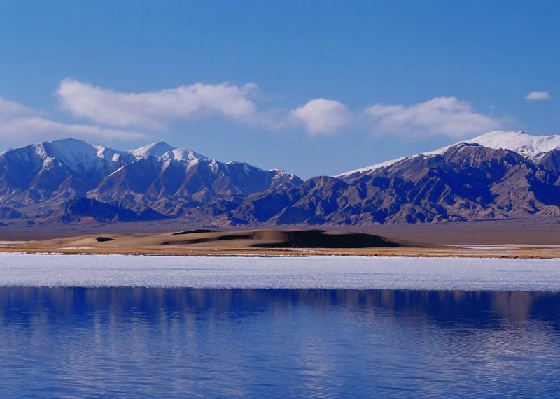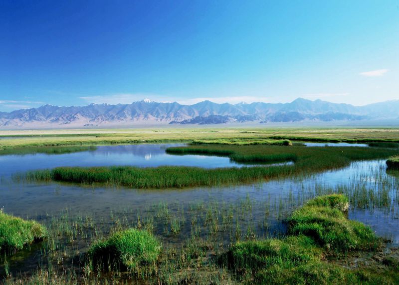 在阿尔金山脉雄伟的祁曼塔格山脚下,库木库里沙漠南部,“隐居”着美丽的高原淡水湖——依协克帕提湖。湖面海拔3850米,面积虽只有18平方公里,但湖周因植被丰富,景色独特,在咸水湖泊密布的羌塘高原,是一奇观。湖中散布着几座小岛,湖水深1—3米,弯曲迂回的湖岸连着片片沼泽,每年春夏之交,成千上万只黑颈鹤、白鹭、银鸥、灰鹤、斑头雁、棕头欧、赤麻鸭、绿头鸭、红脚鹬等候鸟从东南亚和我国云贵高原飞来依协克帕提湖生息繁育。