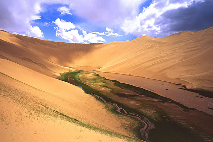 在阿尔金山自然保护区境内,世界海拔最高的沙漠库木库勒沙山北麓,除了可看到庞大的野牦牛群外,还可见到沙子泉奇景,在海拔4000米的同一高程分布着三个巨大的泉眼,仿佛三个巨大的“沙眼”,总名曰沙子泉。其中最大的一眼,泉口直径达200米,面积超过31416平方米;另两个泉口直径分别为50米。三泉一线,形成一体个总面积达35000平方米的小盆地。三大巨泉横向排列,开口向北,汇为一流,名曰大沙河,宽约1000米,水流交错,形态各一,颇为壮观,真乃奇泉绝景。