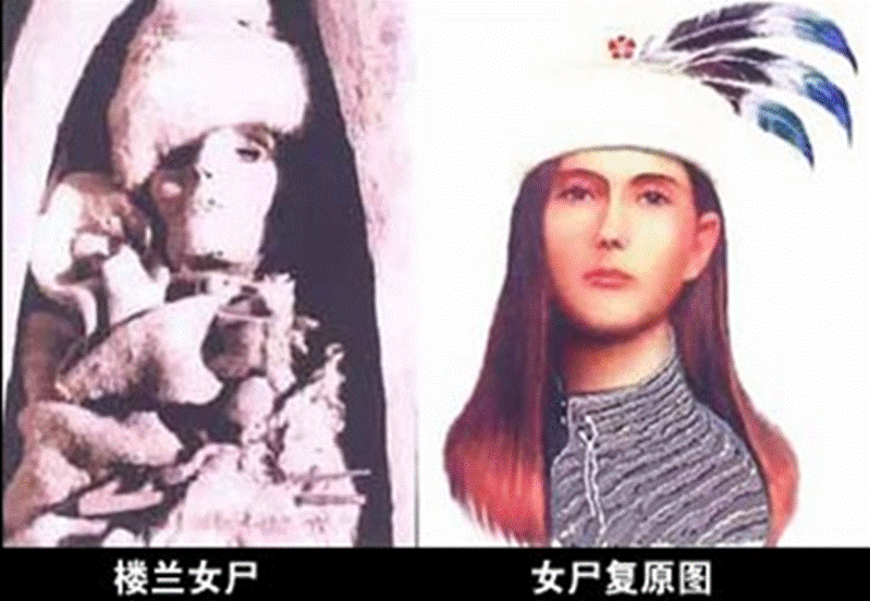 “楼兰美女”是新疆社会科学院考古研究所意外发现并出土的。这是一具我国最古老、保存最完好的女性干尸。这具干尸还是我国目前寄生虫学研究中,保存的最早的实物标本,被冠以“楼兰美女”的美称。她的皮肤光滑富有弹性,呈红褐色,面目清秀,鼻梁尖高,眼睛深凹,睫毛细长,下巴尖翘,具有鲜明的欧罗巴人种特征。她头戴尖顶毡帽,帽插数支翎毛,栗(lì)色长发披肩,足蹬粗线缝制的毛皮靴。这是迄(qì)今为止新疆出土古尸中年代最早的一具。其年龄在40岁左右,生前身高155.8厘米。成为干尸后身长152厘米,重10.7公斤。“楼兰美女”的人类学型属古欧洲人种,其血型为O型。医学专家对“楼兰美女”的尸体解剖发现,其心、肝、肺、脾、膀胱、大小肠、子宫等内脏都有保存,只是变得干硬、萎(wěi)缩。其头发尚有弹性。肺外形也可辨认,肺泡腔内有成堆的黑色尘粒,反映出她生前处于一个风沙很重的环境。