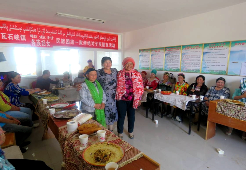 活动多样,零距离接触增进合力。为加强民族团结一家亲,五一期间分别慰问了4名四老人员和老党员,送去了砖茶和暖瓶等生活用品;为无劳动力农民马有才修剪红枣;组织妇女们开展手工艺品编织互学活动;结合全民读书月开展 “送图书进农家”活动;利用微信平台促进双语学习交流等面对面沟通交流活动,实现零距离接触,增进了各民族之间的友谊和合力,让大家充分感受党和政府的关心和社会大家庭的温暖,营造了和谐、团结、文明的社会环境。