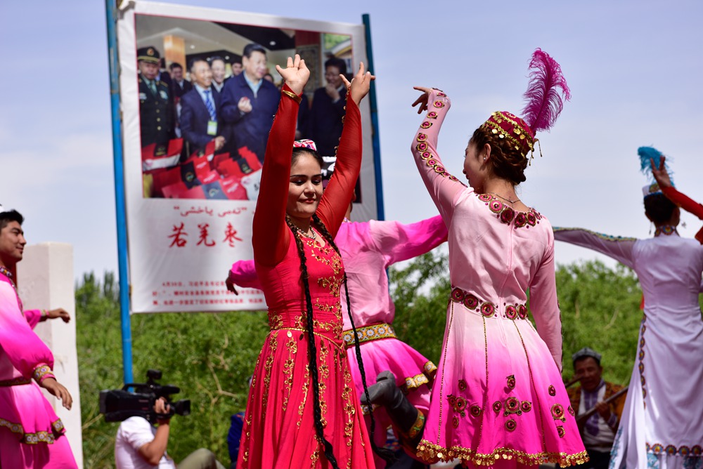 上图为 “若羌赛乃姆”活动中演员们 欢快的舞蹈跳起来