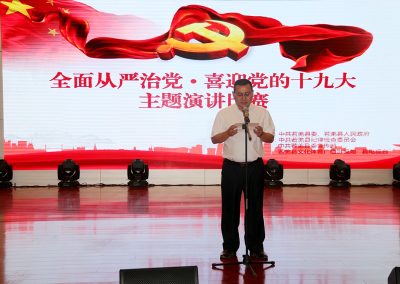 7月13日,我县举办“全面从严治党·喜迎党的十九大”主题演讲比赛,来自全县各乡镇党委、县直各党委的15名选手参加比赛,县委常委、纪委书记阿里木·艾山出席活动并讲话,县人大副主任杨永江、县政协副主席王连河观看比赛并为获奖选手颁奖。