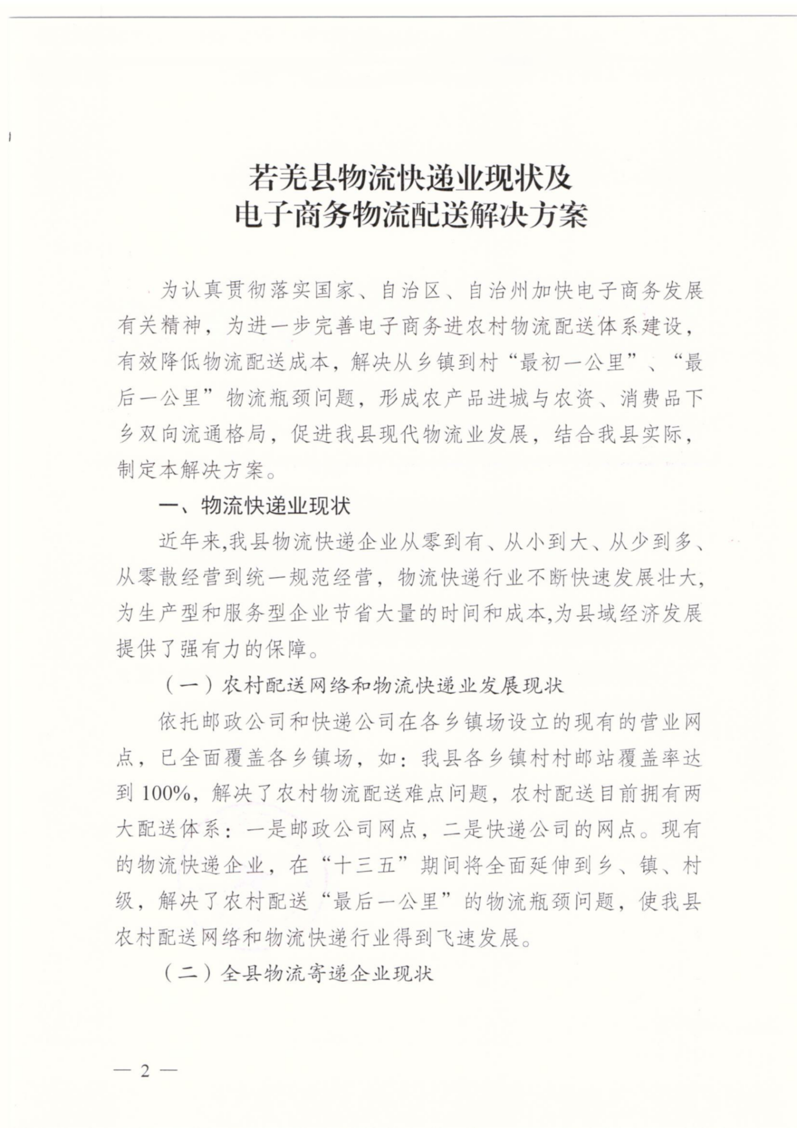 关于印发若羌县物流快递业现状及电子商务物流配送解决方案的通知