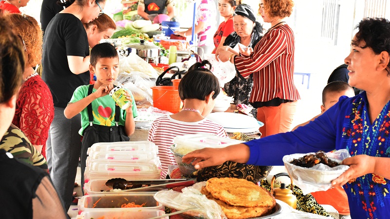 若羌县教育和科学技术局驻吾塔木乡尤勒滚艾日克村工作队副队长陈俊峰说:“我们工作队队员们在住户期间经常帮助村民做一些新疆特色小吃,现在群众的积极性非常高,在利用农闲时机通过卖一些家常的小吃来赚取一些零用钱,对家庭收入也是一个有利的补充,特别是各族群众在巴扎的交易过程中,相互交流,交融进一步加深了彼此间的感情,有利于我们更好的开展民族团结工作,也让各族群众像石榴籽一样紧紧地抱在一起。”